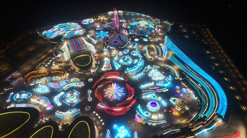 这是1月26日拍摄的第二十六届哈尔滨冰雪大世界园区,这里将作为亚冬会开幕式的分会场(无人机照片)。
