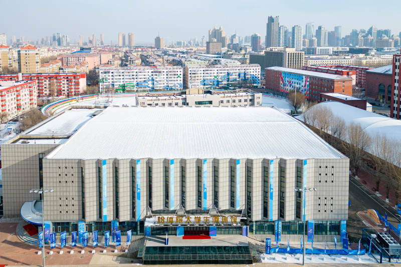 这是1月21日拍摄的哈尔滨体育学院大学生滑冰馆(女子冰球比赛场馆)(无人机照片)。