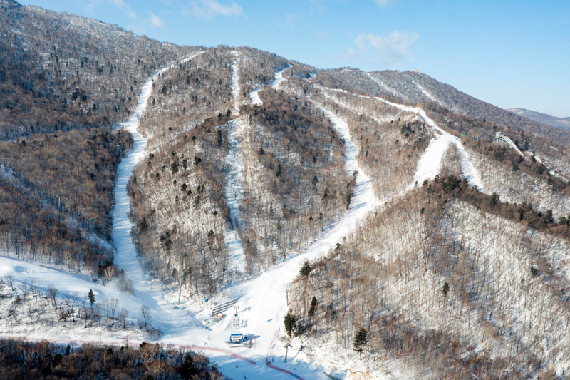 这是1月16日拍摄的位于亚布力滑雪场内的第九届亚冬会雪上赛区一角(无人机照片)。